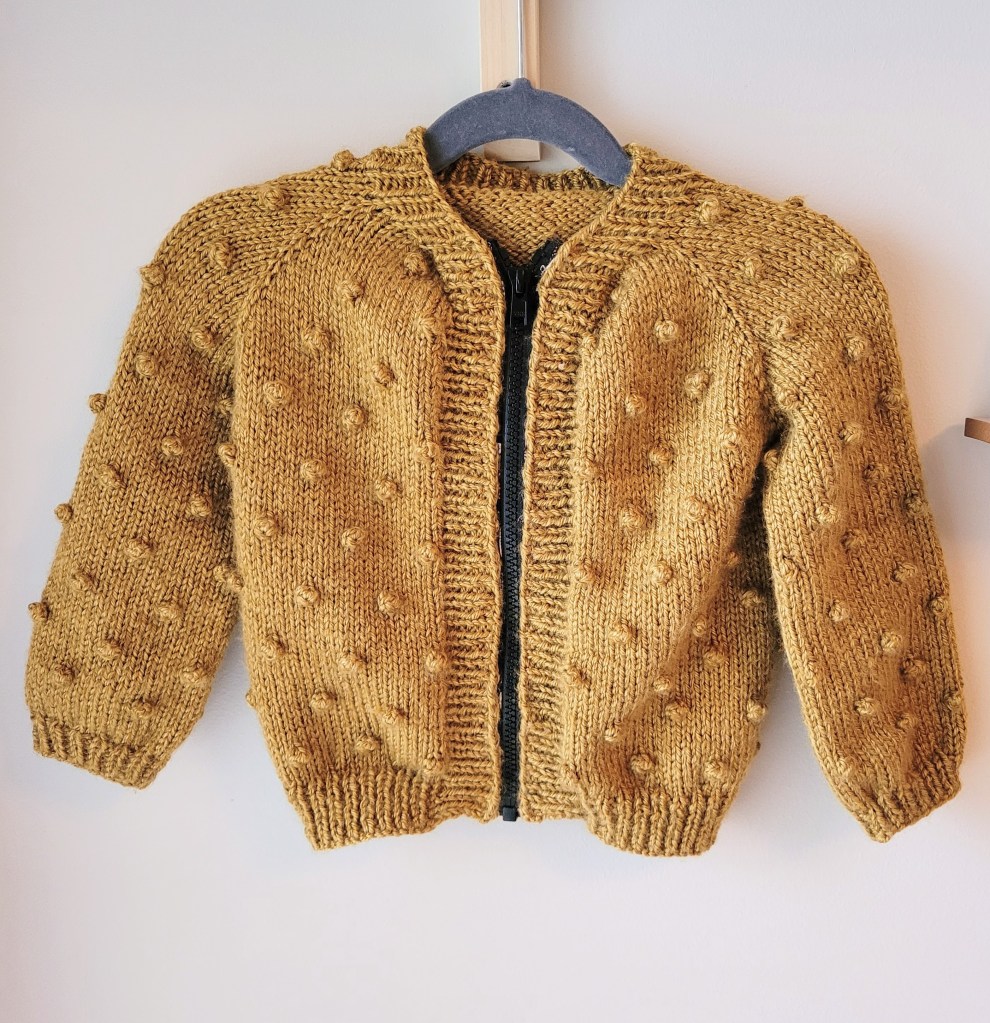 I do enjoy a good adult-sized sweater (mostly because I get to wear it after it’s done), but toddler knits have to be my favourite. The reasons are pretty obvious: small scale, WAY cuter, fewer materials…I could go on, but I also find that they give more room to experiment. In this case, it’s a zipper!