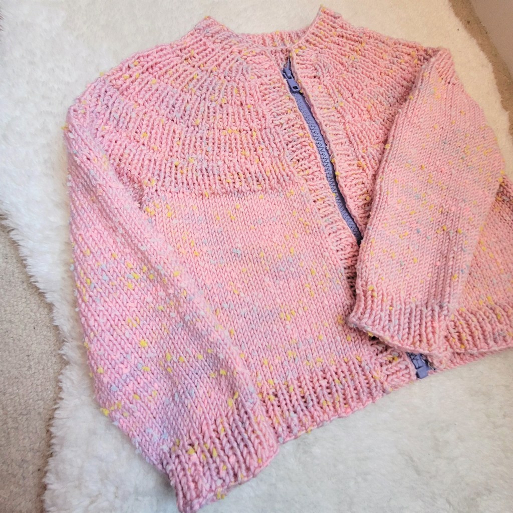 I’m so excited to share this little cardigan. It worked up so quickly and was such a joy to knit from start to finish. Between the great pattern and fun yarn, I didn’t lose interest for even a minute, but that could also be because of the size. Toddler knits are always less of a commitment! Without further ado, here is the confetti cardigan: