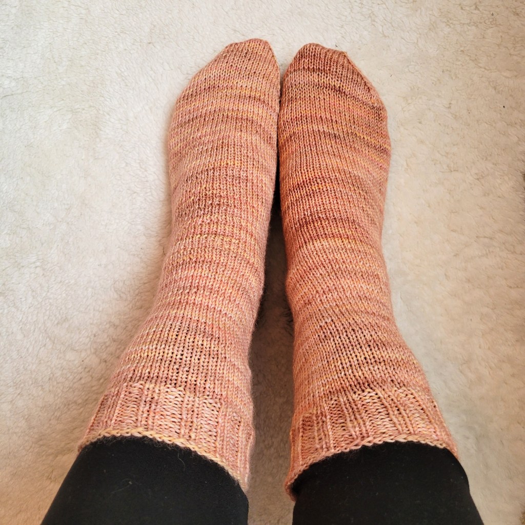 I recently finished another pair of these socks in a beautiful sock yarn from Lichen and Lace in the colour faded rose. This time I used a size 2 needle, which is much more appropriate for fingering yarn. Truthfully, I started this pair in August and finished them in early January. Socks are like that sometimes.