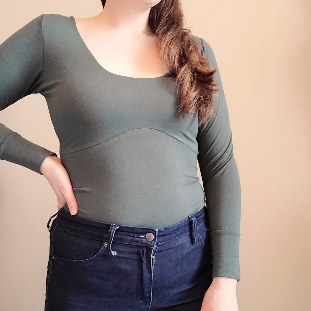 While I’m here talking about one Friday Pattern Co. pattern, I thought I’d mention another: the Elysian Bodysuit. When this pattern made the rounds on YouTube and Instagram, I definitely thought it wasn’t for me. As a relatively tall person, I’ve never owned a bodysuit… but isn’t that a great reason to make my own?