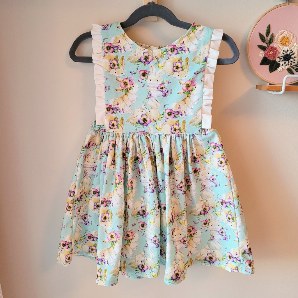 As I sit down to write this post, it feels like -8 outside. MINUS EIGHT. I’m so over this crazy cold weather we’ve been having in Toronto, so I’ve started sewing for spring. These two projects are serotonin sewing at its finest – ruffles, bunnies, mice, tiny clothing… What more could you need?