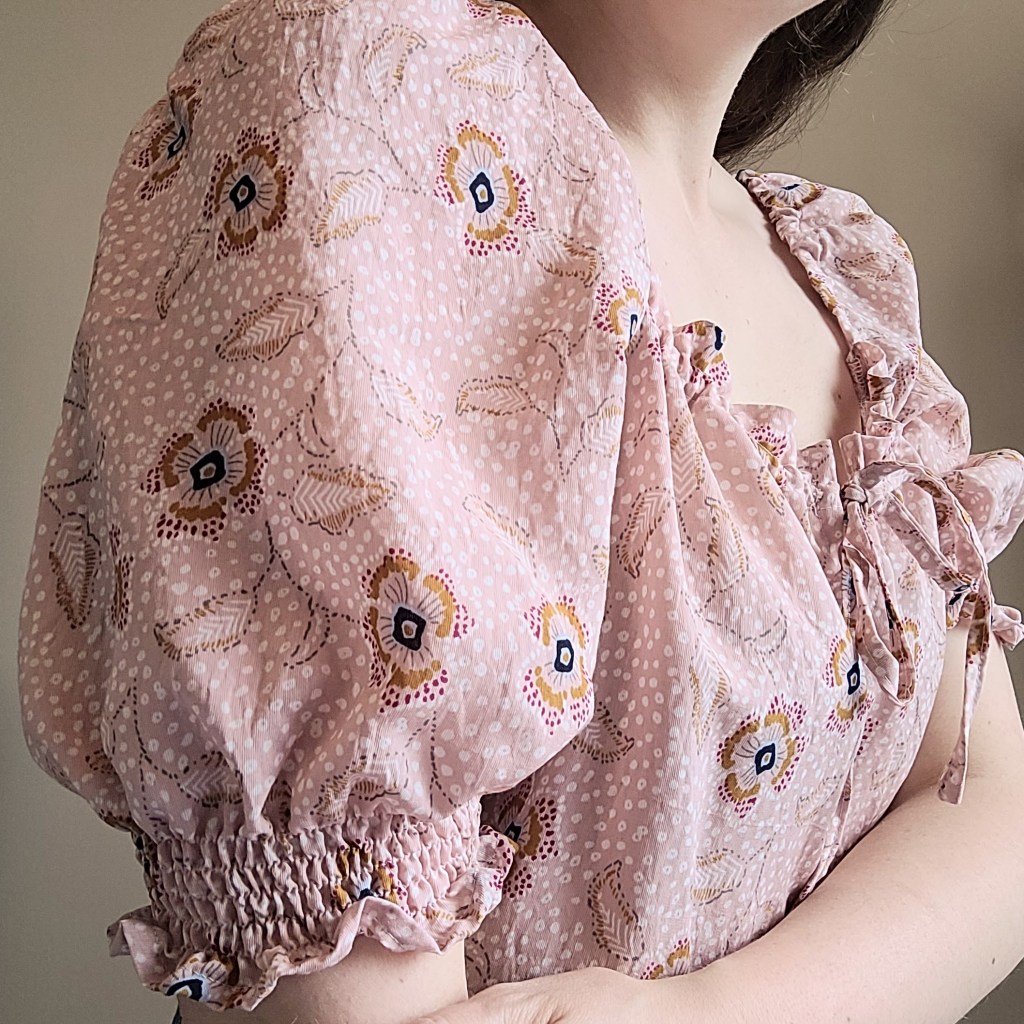 There are so many pros to this pattern, but my favourite aspect is the shirring. I was so scared to shirr before my Anthea Blouse hack I recently wrote about, and now I can’t stop. Both the waistline and arms feature multiple rows of shirring, which adds a soft, feminine detail to the blouse.