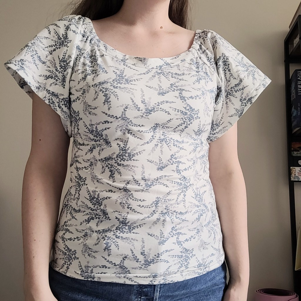 The Adrienne Blouse is one of my absolute favourite patterns. It’s actually become my go-to t-shirt pattern, even though the original pattern isn’t a t-shirt at all. To achieve this, I created a shortened sleeve piece and didn’t add elastic to the hem. This left me with a flutter sleeve that is feminine and breezy. For this version I used a Family Fabrics Netherlands cotton jersey from Riverside Fabrics. Even though this fabric was high-quality and beautiful, I actually prefer this style of shirt in a drapey bamboo cotton.