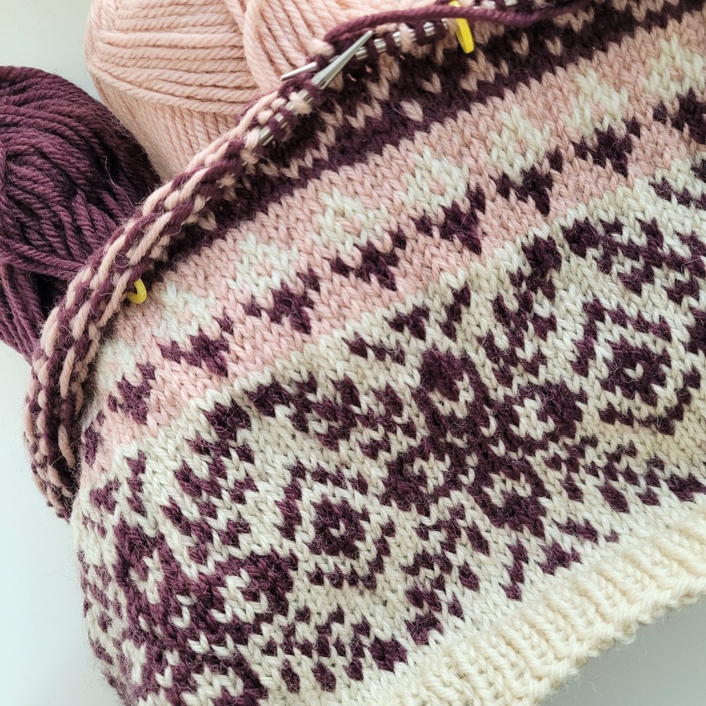 I learned some techniques through these patterns that I’ll use in more colourwork projects. I knit in the English style (or “throwing”), so knitting with one hand in continental style was new for me. The patterns contain helpful videos for carrying floats which was a total gamechanger. It made colourwork enjoyable rather than a tangled mess. I’ll definitely knit another one of these next winter!