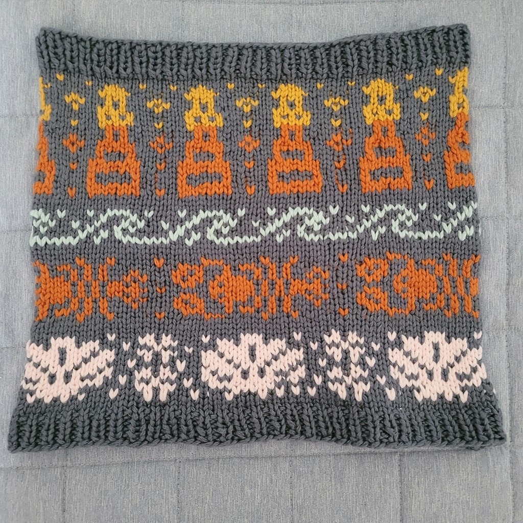 The charts for this pattern are available in The Ocean Doodle Cowl by Pacific Knit Co.